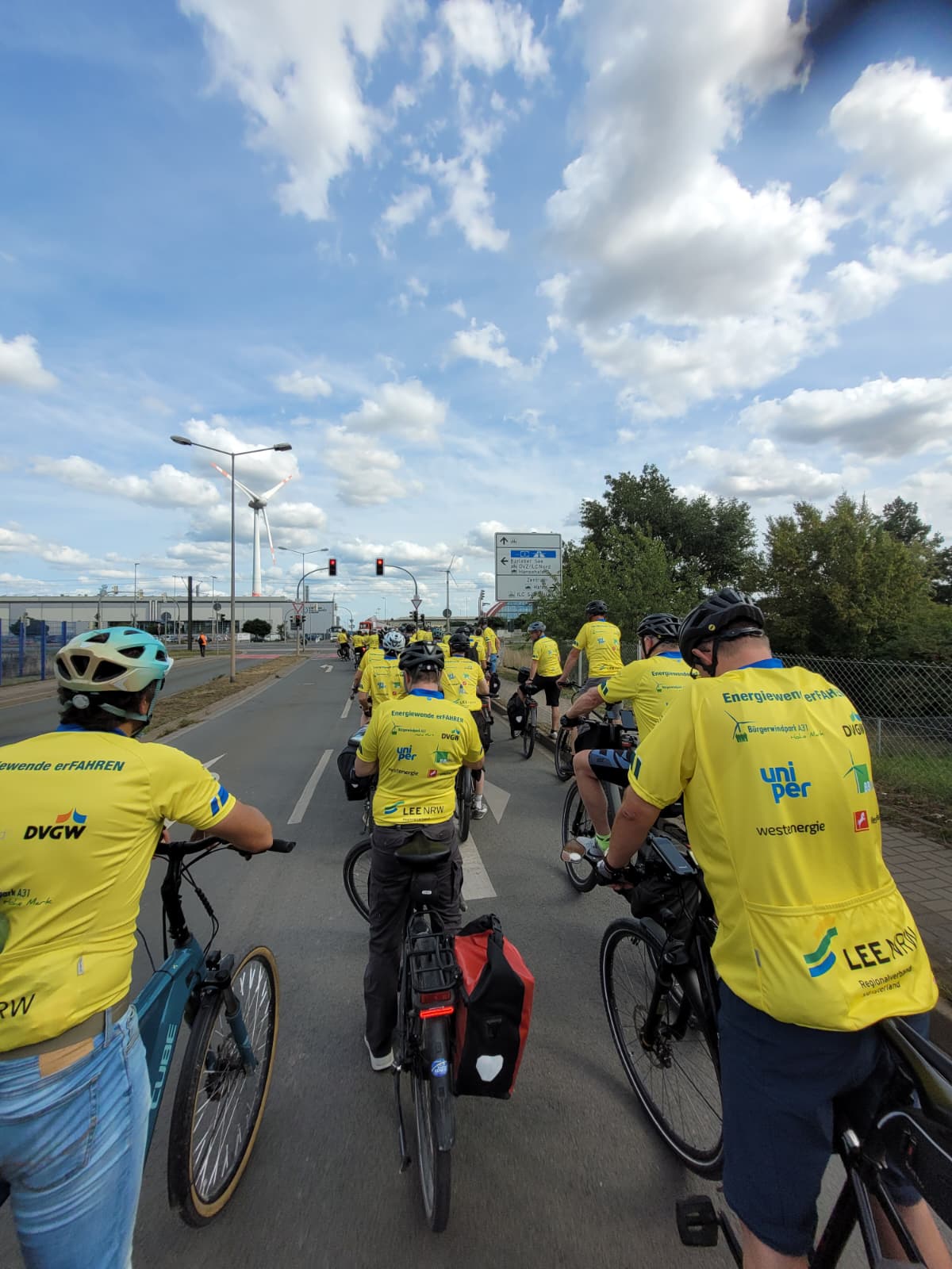 Vom 31. August bis 6. September 2025 ging es mit dem Rad vom Münsterland quer durch die Bundesrepublik nach Berlin. Im Rahmen der Tour wurden entlang der Strecke Leuchttürme der erneuerbaren Energiewende angesteuert. Ziel der Tour war es, Innovationen und Errungenschaften der erneuerbaren Energiebrache direkt und hautnah zu besichtigen und zu erleben. Dabei kamen die rund 60 Teilnehmenden mit zahlreichen Akteuren aus Wirtschaft, Politik, Gesellschaft und mit Machern der Energiewende ins Gespräch – Das perfekte Format, um die Energiewende zu erFAHREN.