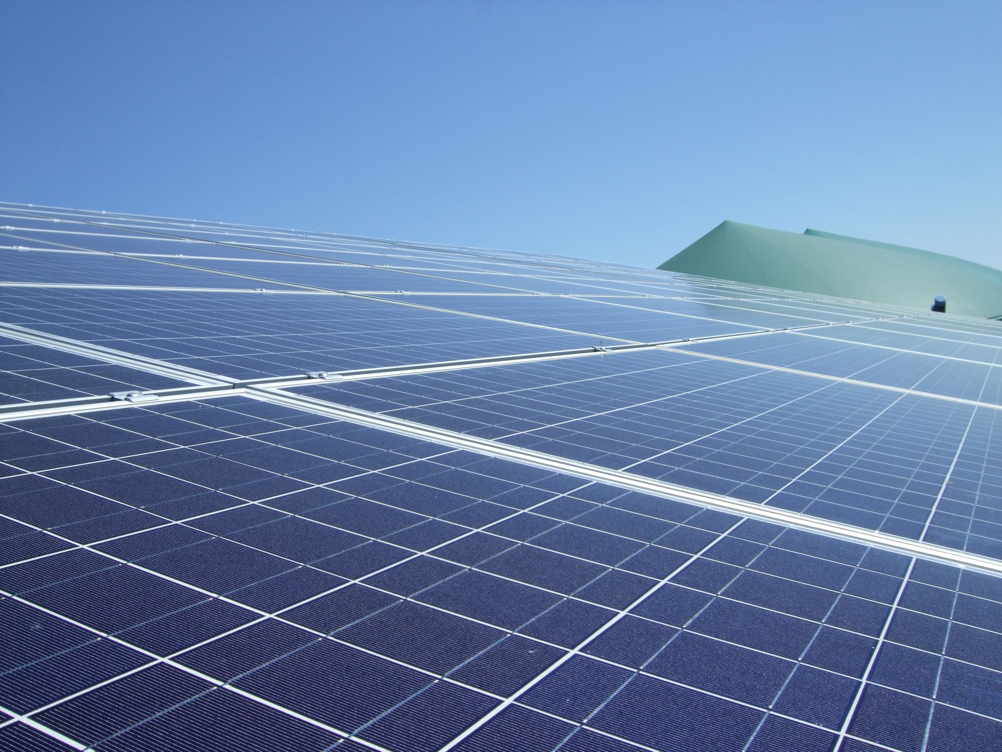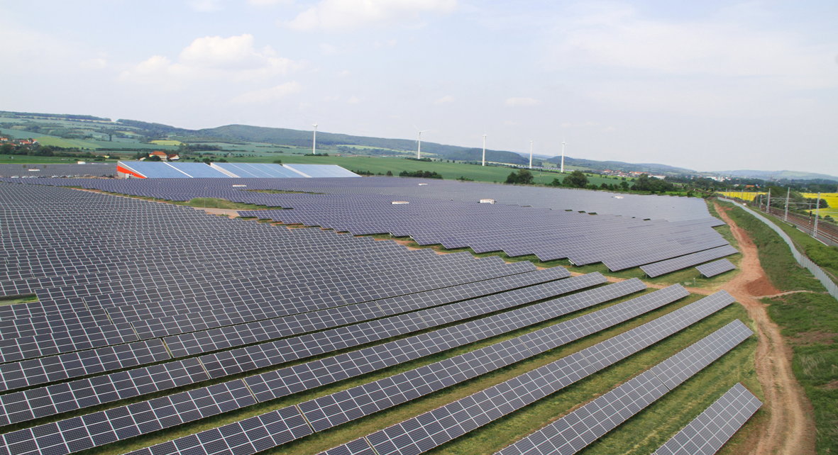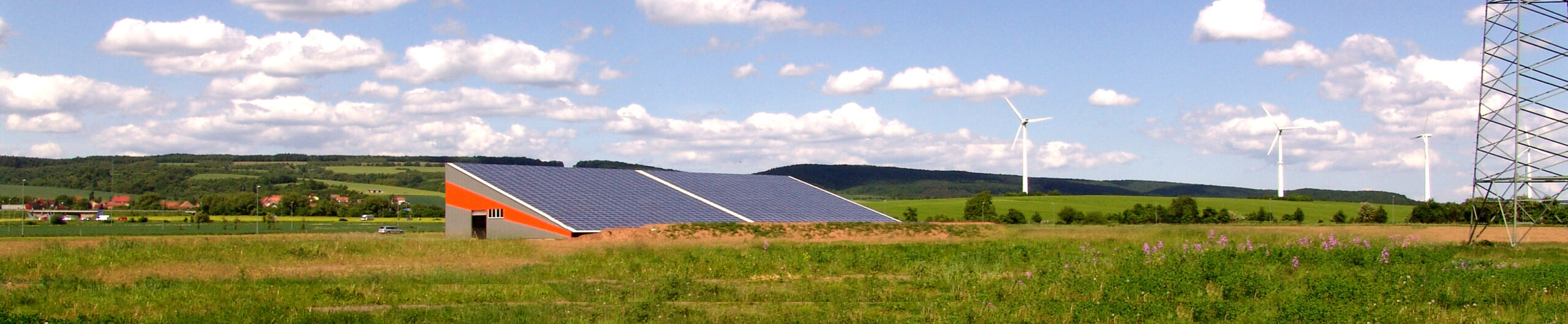 12 MW Solarpark in Berga mit 3 VEGA Hallen im Hintergrund, die über eine Gesamtleistung von ca. 1,2 MW verfügen.