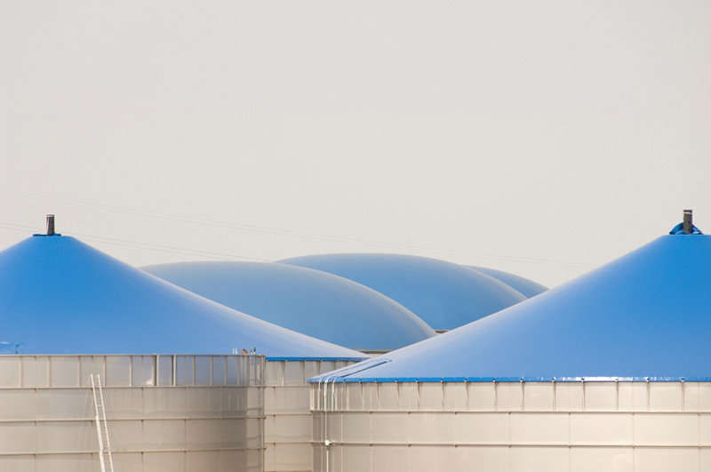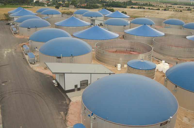 Dächer einer Biogasanlage von Weltec Biopower GmbH in Könnern.